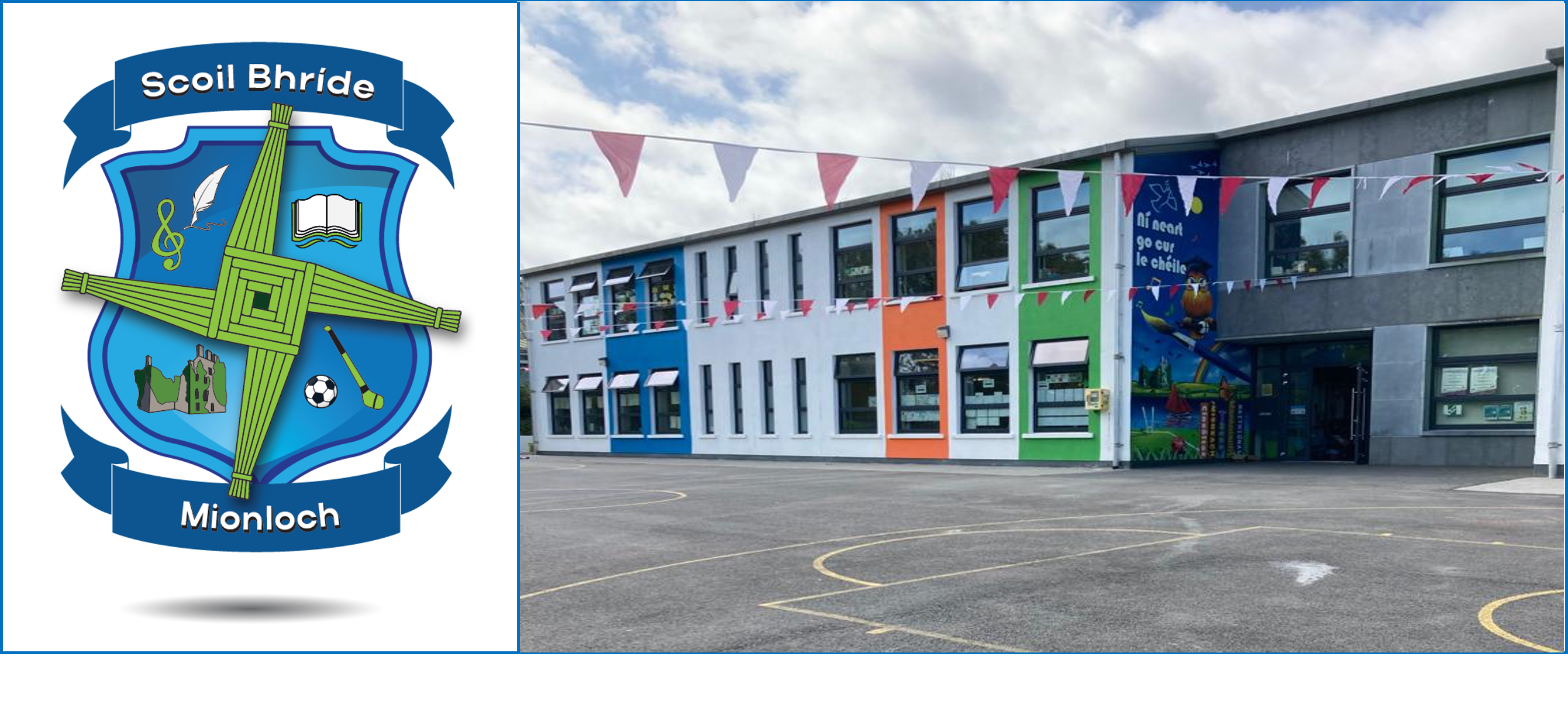 Fáilte chuig lató Scoil Bhríde, Mionloch. Déanfar an t-airgead a bhaileofar ón tionscnamh tiomsaithe airgid seo a infheistiú in uasghrádú páirc na scoile.